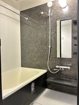 - เปลี่ยนวอลเปเปอร์ เปลี่ยนกระเบื้องปูพื้นใหม่ในห้องแต่งตัวและห้องน้ำ