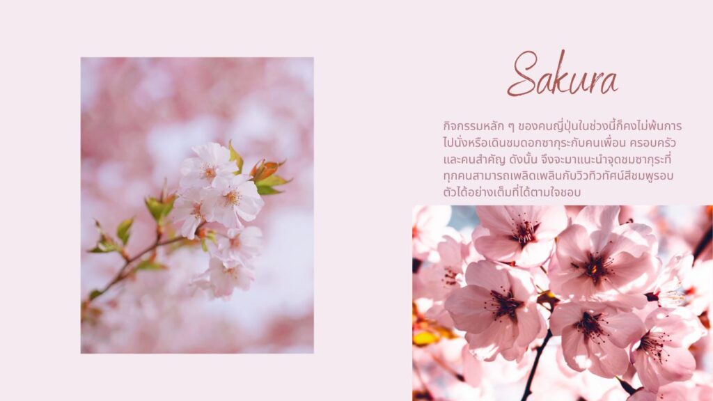 กิจกรรมหลัก ๆ ของคนญี่ปุ่นในช่วงนี้ก็คงไม่พ้นการไปนั่งหรือเดินชมดอกซากุระ (Sakura) กับคนเพื่อน ครอบครัวและคนสำคัญ ดังนั้น จึงจะมาแนะนำจุดชมซากุระที่ทุกคนสามารถเพลิดเพลินกับวิวทิวทัศน์สีชมพูรอบตัวได้อย่างเต็มที่ได้ตามใจชอบ ใน Concept “A Springtime Dream: Top 12 Sakura Spots In Japan”
