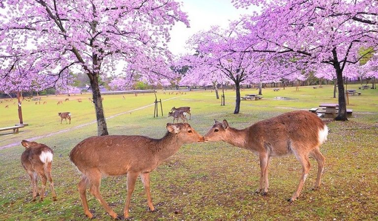 สวนสาธารณะนาราเป็นสวนที่มีขนาดใหญ่ และที่จังหวัดนารานั้นได้มีกวางมาเป็นสัญลักษณ์ของเมือง จึงทำให้ภายในสวนสาธารณะแห่งนี้มีน้องกวางน่ารัก ๆ อยู่มากมาย รวมไปถึงต้นซากุระที่มีจำนวนมากราว ๆ 1,600 ต้นและมีระยะเวลาในการบานสะพรั่งของมันที่ค่อนข้างนานอีกด้วย
