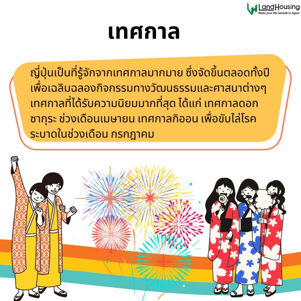 ญี่ปุ่นเป็นที่รู้จักจากเทศกาลมากมาย ซึ่งจัดขึ้นตลอดทั้งปีเพื่อเฉลิมฉลองกิจกรรมทางวัฒนธรรมและศาสนาต่างๆ เทศกาลที่ได้รับความนิยมมากที่สุด ได้แก่ เทศกาลดอกซากุระ ช่วงเดือนเมษายน เทศกาลกิออน เพื่อขับไล่โรคระบาดในช่วงเดือน กรกฎาคม และเทศกาลหิมะซัปโปโร ช่วงเดือนกุมภาพันธ์
