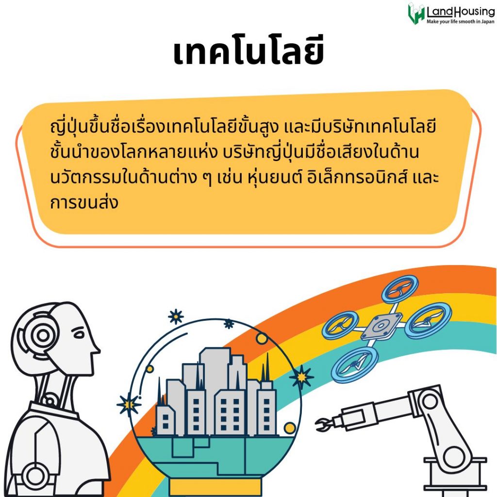 ญี่ปุ่นขึ้นชื่อเรื่องเทคโนโลยีขั้นสูง และมีบริษัทเทคโนโลยีชั้นนำของโลกหลายแห่ง บริษัทญี่ปุ่นมีชื่อเสียงในด้านนวัตกรรมในด้านต่าง ๆ เช่น หุ่นยนต์ อิเล็กทรอนิกส์ และการขนส่ง