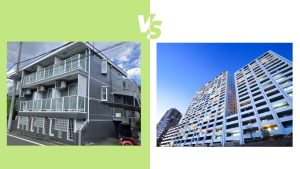 ประเภทของที่พักที่เป็นห้องเช่ารายเดือนของญี่ปุ่นหลัก ๆ ได้แก่ แมนชั่น และอพาร์ทเม้นท์โดยที่พักทั้งสองประเภทนี้มีลักษณะหลักๆ ที่แตกต่างกันดังนี้