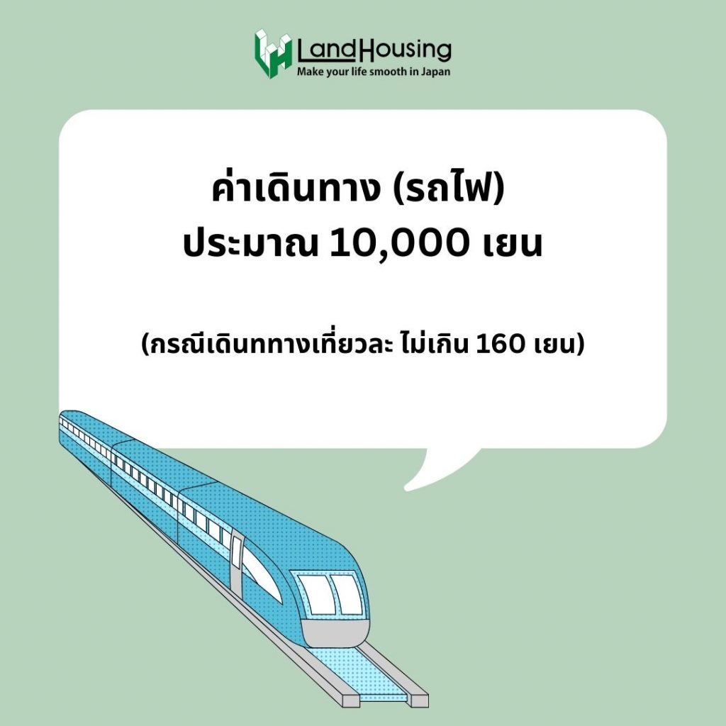 ค่าเดินทาง โดยส่วนมากคนญี่ปุ่นจะเดินทางโดยรถไฟ ใน 1 เดือน จะอยู่ที่ประมาณ 10,000 เยน