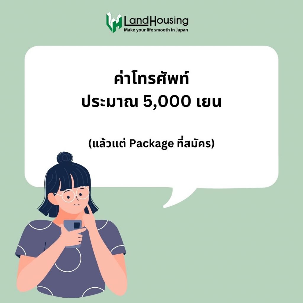 ค่าโทรศัพท์ โดยส่วนใหญ่ค่าโทรศัพท์ที่ญี่ปุ่นจะมีแพ็กเกจราคา 2,000 – 7,000 เยน คนที่ไปใช้ชีวิตในญี่ปุ่นส่วนมากจะเลือก Package กลาง ๆ ที่ 5,000 เยนต่อเดือน โดยที่ญี่ปุ่นเวลาโทรศัพท์จะไม่เสียค่าโทรอยู่แล้ว (ดู Package ได้ที่นี่)