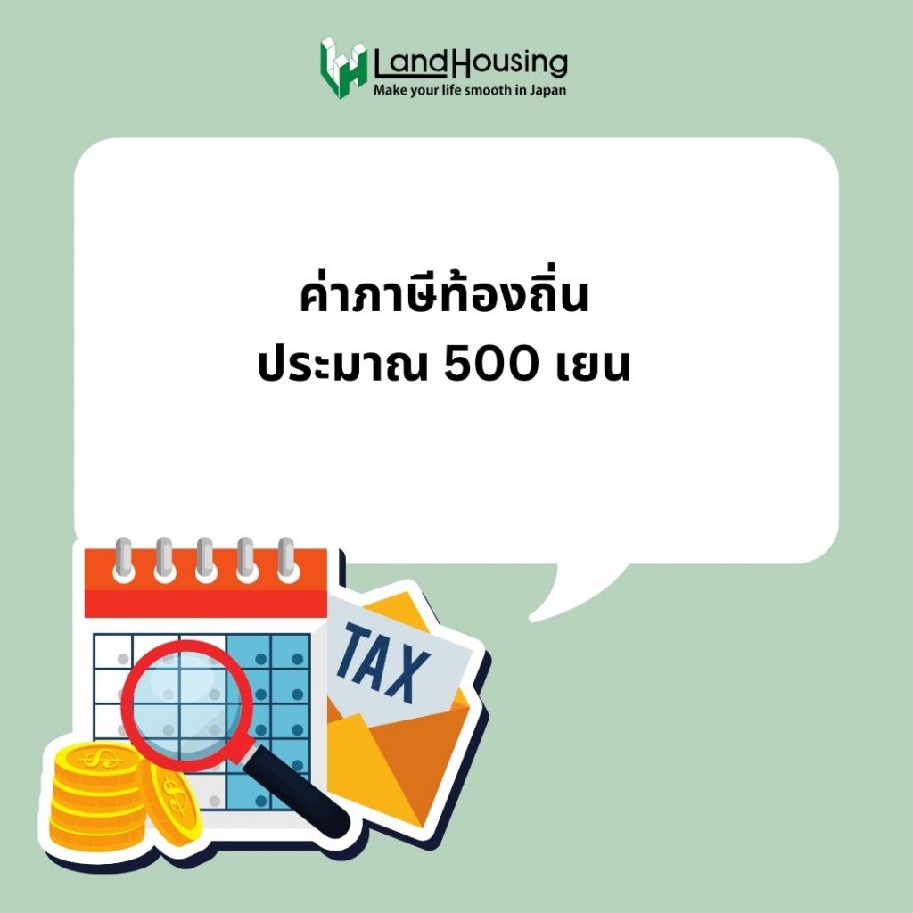 ค่าภาษีท้องถิ่น โดยส่วนใหญ่จะเสียประมาณ 500 เยนต่อเดือน (ประมาณ 125 บาท)
