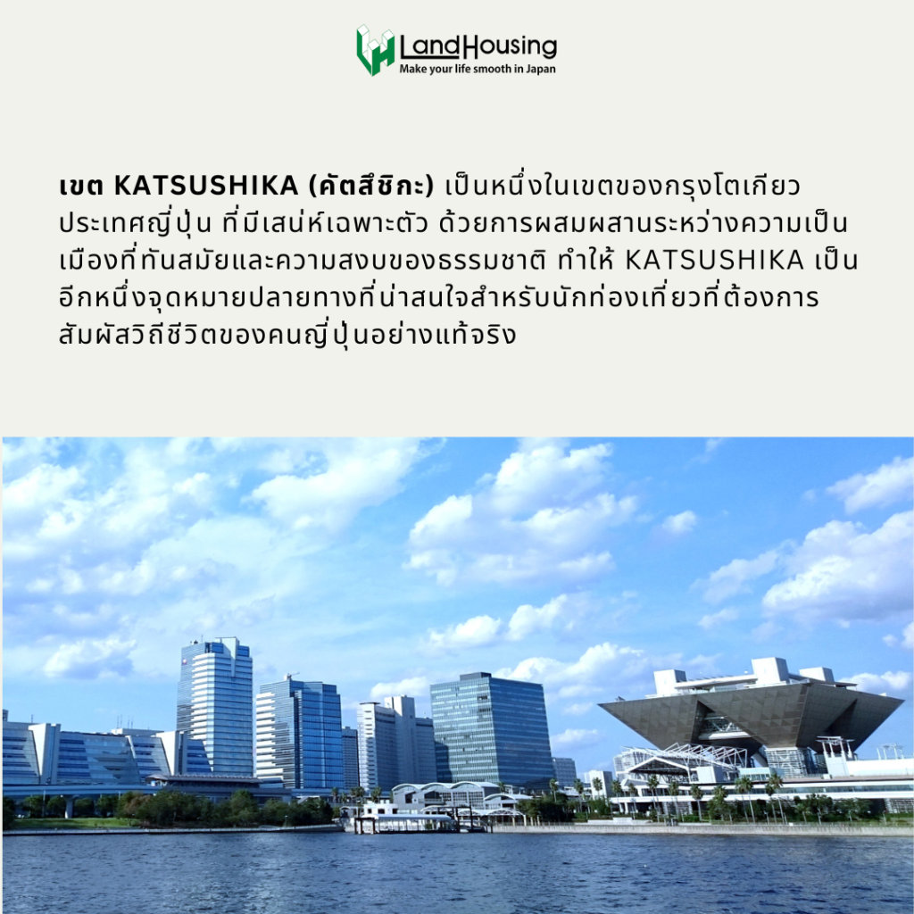 ย่าน Katsushika-ku เป็นหนึ่งใน 23 เขตพิเศษของกรุงโตเกียว ที่มีบรรยากาศเงียบสงบและคงความเป็นย่านที่อยู่อาศัยของคนท้องถิ่นอย่างมากเหมาะสำหรับคนที่ชอบบรรยากาศที่ไม่วุ่นวายเหมือนในใจกลางเมืองโตเกียว นอกจากนี้ยังมีประวัติศาสตร์และวัฒนธรรมท้องถิ่นที่น่าสนใจอีกด้วย