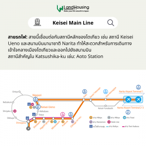 1. Keisei Main Line (Keisei Electric Railway) สายนี้เชื่อมต่อกับสถานีหลักของโตเกียว เช่น สถานี Keisei Ueno และสนามบินนานาชาติ Narita ทำให้สะดวกสำหรับการเดินทางเข้าใจกลางเมืองโตเกียวและออกไปยังสนามบิน สถานีสำคัญใน Katsushika-ku