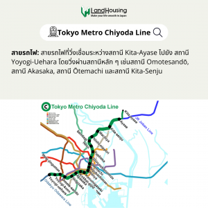 3. Tokyo Metro Chiyoda Line สายนี้เชื่อมต่อกับสาย JR Joban Line ที่สถานี Ayase ซึ่งเป็นสถานีที่ตั้งอยู่ใกล้กับเขต Adachi แต่มีผลต่อการเดินทางในพื้นที่ Katsushika อย่างมาก เนื่องจากสายนี้วิ่งผ่านสถานที่สำคัญหลายแห่งในโตเกียว เช่น Omotesando และ Hibiya
