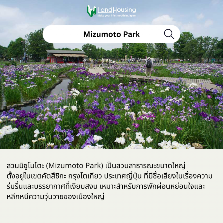 สวน Mizumoto – สวนนี้เป็นพื้นที่สีเขียวขนาดใหญ่ที่สุดในเขต Katsushika มีบึงน้ำ สวนดอกไม้ และสนามหญ้าเหมาะสำหรับการปิกนิก นอกจากนี้ยังมีทางเดินและที่ปั่นจักรยานให้เพลิดเพลินกับธรรมชาติ ย่านนี้จึงเหมาะสำหรับผู้ที่อยากสัมผัสวิถีชีวิตชุมชนดั้งเดิมของโตเกียว หรือหากต้องการหลีกหนีความวุ่นวายจากย่านใจกลางเมือง ย่าน Katsushika จึงเป็นตัวเลือกที่ดีอีกที่หนึ่ง