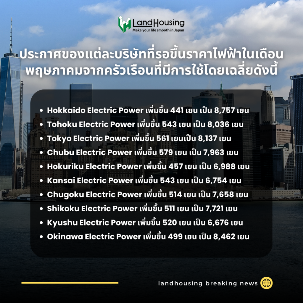 New! เตรียมจ่ายหนัก! ค่าไฟฟ้าและแก๊สในญี่ปุ่นพุ่งสูงขึ้นในเดือนพฤษภาคม