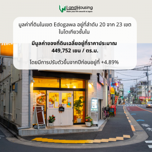 3. ราคาที่ดินและค่าเช่าที่น่าสนใจ: แม้ว่าราคาที่ดินในเอโดกาวะจะปรับตัวสูงขึ้น แต่ก็ยังถือว่าอยู่ในระดับที่จับต้องได้เมื่อเทียบกับย่านอื่นๆ ในโตเกียว และค่าเช่าก็ยังอยู่ในระดับที่ไม่สูงมาก ทำให้เอโดกาวะเป็นตัวเลือกที่น่าสนใจสำหรับผู้ที่ต้องการซื้อหรือเช่าบ้าน