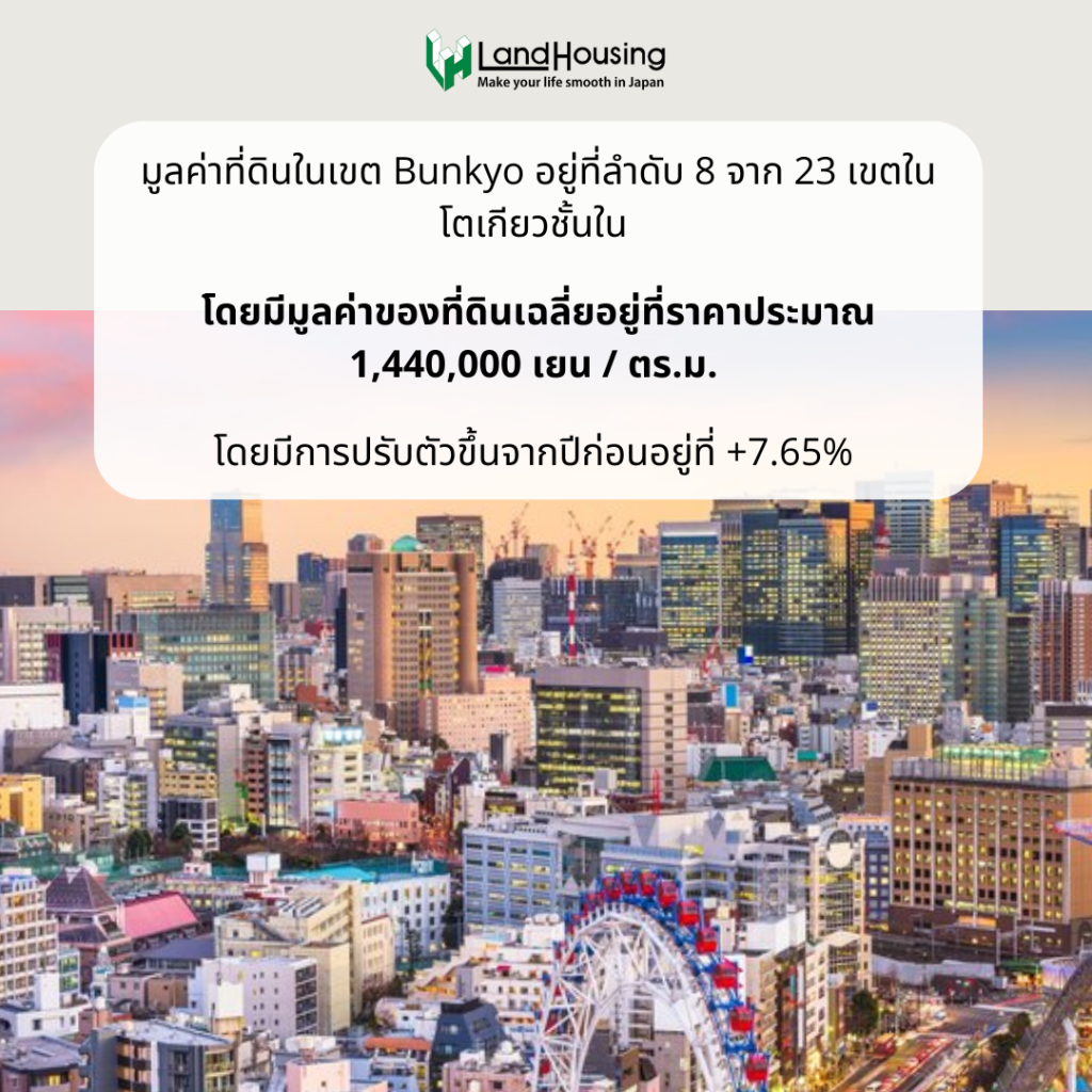 ราคาที่ดิน: มูลค่าที่ดินในเขตบุงเกียวมีแนวโน้มสูงขึ้นอย่างต่อเนื่อง เฉลี่ย 1,440,000 เยนต่อตารางเมตร