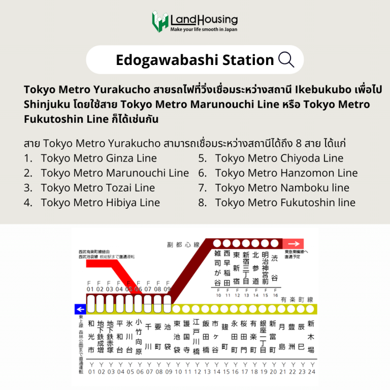 การเดินทาง: รถไฟสาย Tokyo Metro Yurakucho เชื่อมต่อกับ 8 สายหลัก