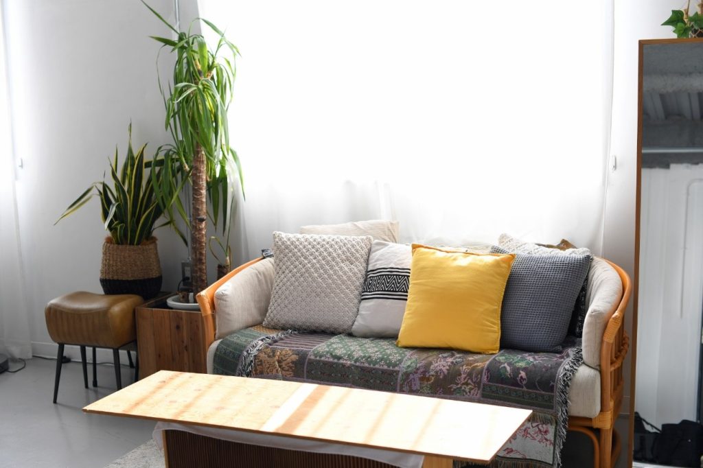 - วางโซฟาชิดผนังหรือมุมห้อง ช่วยให้เหลือพื้นที่ตรงกลาง ทำให้ห้องดูไม่อึดอัด