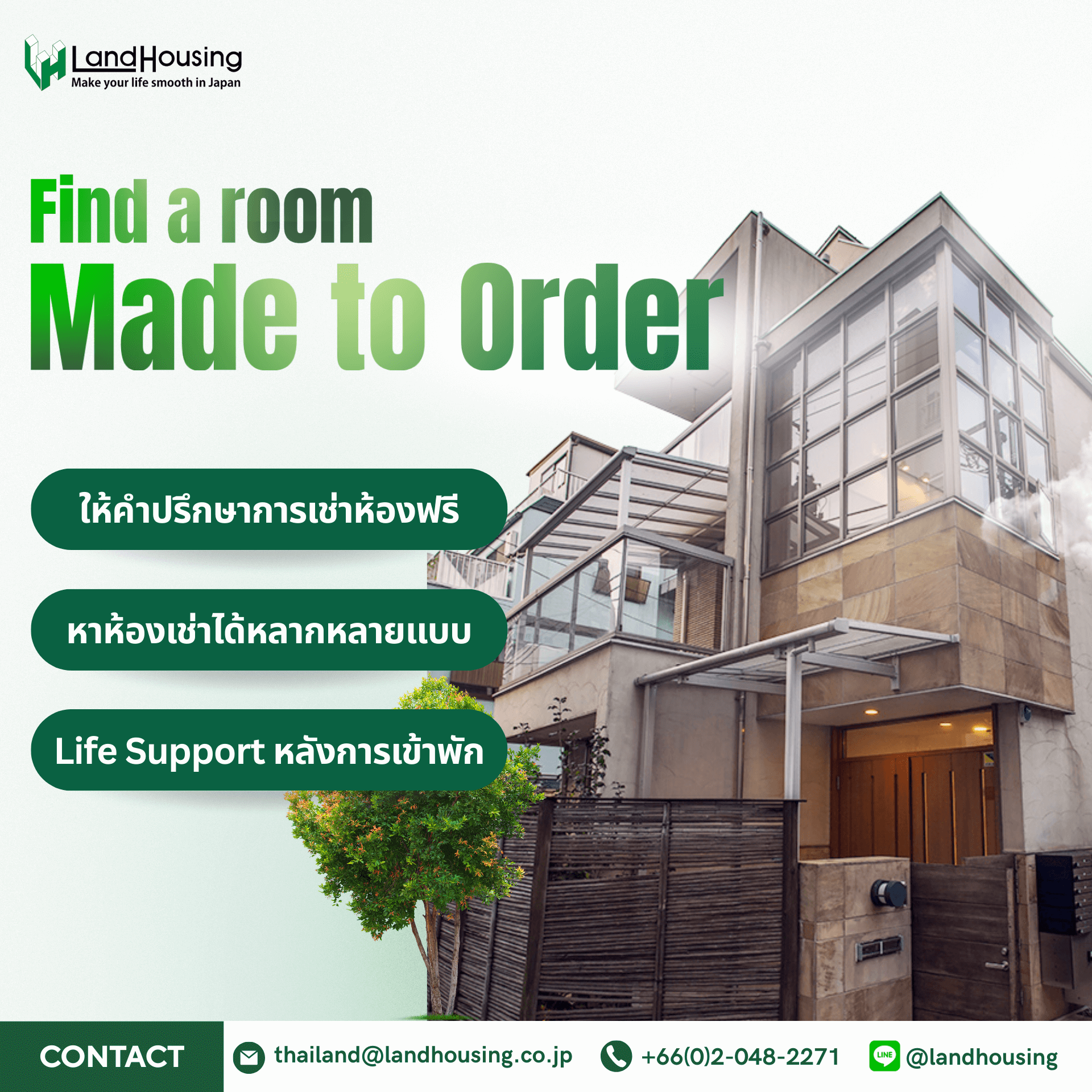 ขอบคุณสำหรับการติดต่อสอบถาม LandHousing ให้ความสำคัญกับการสอบถามของคุณและเราจะพยายามติดต่อคุณโดยเร็วที่สุด เพื่อให้ตอบกลับได้อย่างมีประสิทธิภาพสูงสุด คุณอาจได้รับการติดต่อจากเจ้าหน้าที่ของเราเพื่อสอบถามเกี่ยวกับความต้องการของคุณทางโทรศัพท์หรือช่องทางการติดต่อใดๆ ที่คุณกรอกตอบแบบสอบถามเมื่อสักครู่